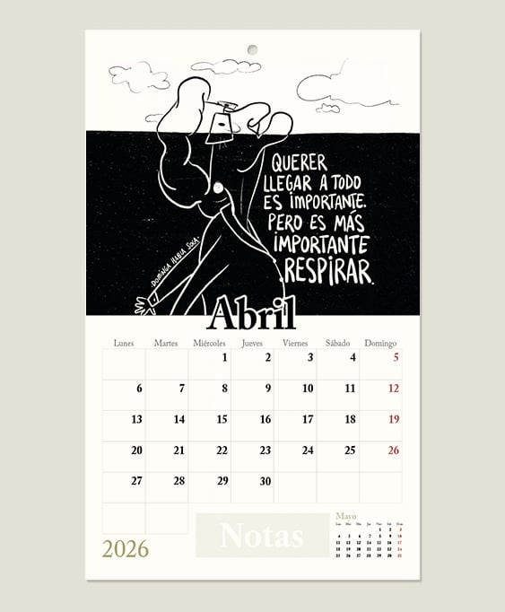 - Espacio en cada día para pequeñas anotaciones diarias y un espacio en la parte inferior para anotaciones generales mensuales.